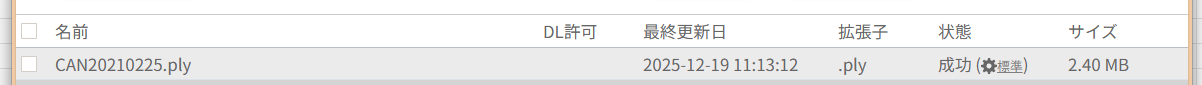 より多くの頂点数を表示した場合は、専用サイトにて当該点群データの「状態」欄の歯車アイコンをクリックしてください。